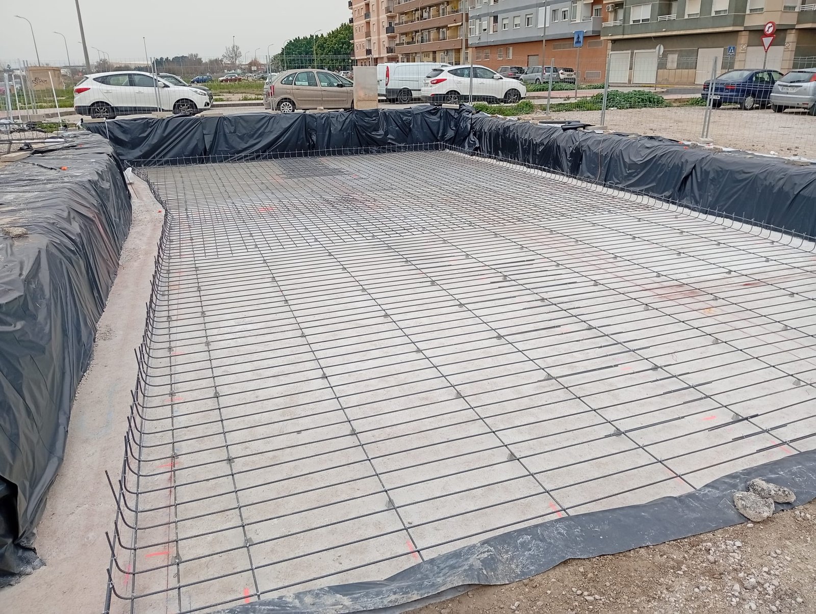 La cimentación se resuelve mediante una losa de hormigón armado ejecutada con HA-30/F/20/XA3, un tipo de hormigón especialmente indicado para cimentaciones y entornos con posibles agresiones químicas. Esta elección no es casual: asegura una mayor durabilidad frente a la humedad y a las condiciones del terreno, aportando solidez y tranquilidad a largo plazo.
